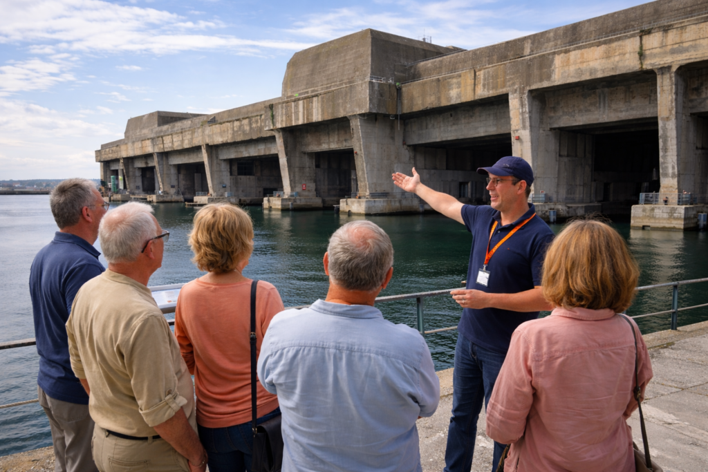 | Day 2 | Lorient U-Boat Base — guided visit to the German submarine base, exploring Brittany’s strategic role during World War II. (Included) | Breton Resistance & Operation Dingson — visit the Resistance Museum in Saint-Marcel and WWII memorial sites in Plumelec. (Optional) | Dinner at a locally recommended restaurant. (Not included) |